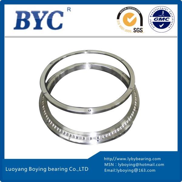| 產品特點 | BYC交叉滾子軸承是兩列圓柱滾子在呈90度的V形滾道上通過尼龍隔離塊被相互垂直交叉排列,所以交叉滾子軸承可承受徑向負荷、軸向負荷及力矩負荷等多方向的負荷。內外圈的尺寸被小型化,極薄形式更是接近于極限的小型尺寸,并且具有高剛性,BYC博盈交叉滾子軸承精度可達到P2級。因此適合于工業(yè)機器人的關節(jié)旋轉部、機械加工中心的旋轉臺、精密旋轉工作臺、醫(yī)療機器、計算器、IC制造裝置等設備。 | ||||||||||