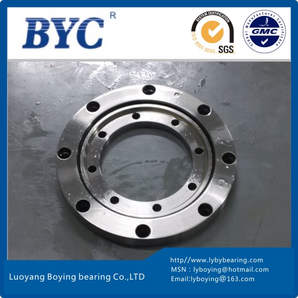 | 產(chǎn)品特點 | BYC交叉滾子軸承是兩列圓柱滾子在呈90度的V形滾道上通過尼龍隔離塊被相互垂直交叉排列,所以交叉滾子軸承可承受徑向負(fù)荷、軸向負(fù)荷及力矩負(fù)荷等多方向的負(fù)荷。內(nèi)外圈的尺寸被小型化,極薄形式更是接近于極限的小型尺寸,并且具有高剛性,BYC博盈交叉滾子軸承精度可達(dá)到P2級。因此適合于工業(yè)機(jī)器人的關(guān)節(jié)旋轉(zhuǎn)部、機(jī)械加工中心的旋轉(zhuǎn)臺、精密旋轉(zhuǎn)工作臺、醫(yī)療機(jī)器、計算器、IC制造裝置等設(shè)備。 | ||||||||||||