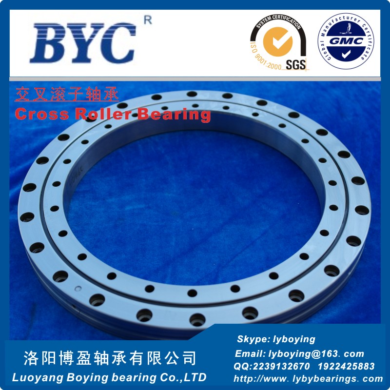 | 產(chǎn)品特點 | BYC交叉滾子軸承是兩列圓柱滾子在呈90度的V形滾道上通過尼龍隔離塊被相互垂直交叉排列,所以交叉滾子軸承可承受徑向負(fù)荷、軸向負(fù)荷及力矩負(fù)荷等多方向的負(fù)荷。內(nèi)外圈的尺寸被小型化,極薄形式更是接近于極限的小型尺寸,并且具有高剛性,BYC博盈交叉滾子軸承精度可達(dá)到P2級。因此適合于工業(yè)機(jī)器人的關(guān)節(jié)旋轉(zhuǎn)部、機(jī)械加工中心的旋轉(zhuǎn)臺、精密旋轉(zhuǎn)工作臺、醫(yī)療機(jī)器、計算器、IC制造裝置等設(shè)備。 | ||||||||||||